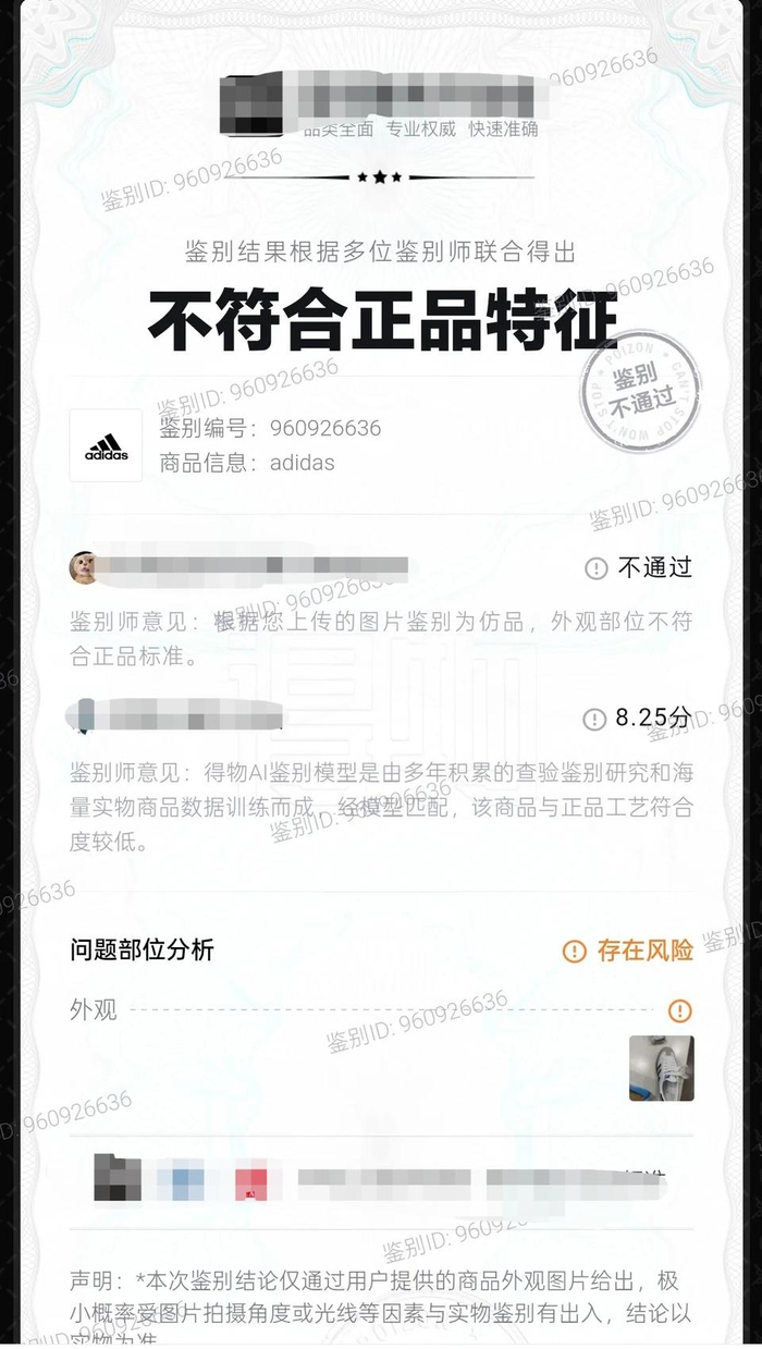 “第三方检测平台通过照片对商品进行的线上鉴别,准确性受光线、清晰度等影响比较大,鉴定结果只作为消费者的参考。”不方便具名的鉴别师小悠表示,作为法律依据的话,还是需要线下鉴别,而且一般要通过“中字头”或“国字头”等更权威、更有公信力的机构。“如此,消费者需要一定的维权成本,还需要等待一定的周期。还是提醒大家购物认准正规直播平台,这样更有保障一些”。