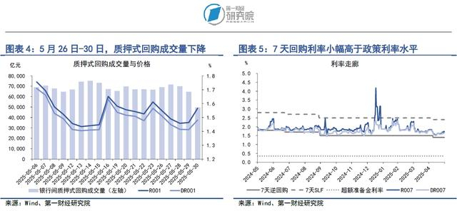 在5月26日至30日当周,银行间市场流动性较前一周边际收紧。从成交量来看,上周银行间质押式回购成交量均值为6.5万亿元,较前一周下降2235.69亿元。