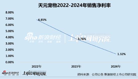 由此可见,天元宠物自2022年登陆创业板后,营收规模虽持续扩张,但净利润却从2022年的1.29亿元骤降至2024年的4596万元,降幅达64%。这种“增收不增利”的困境,既暴露了宠物行业代工模式的先天缺陷,也折射出公司战略转型中无奈。