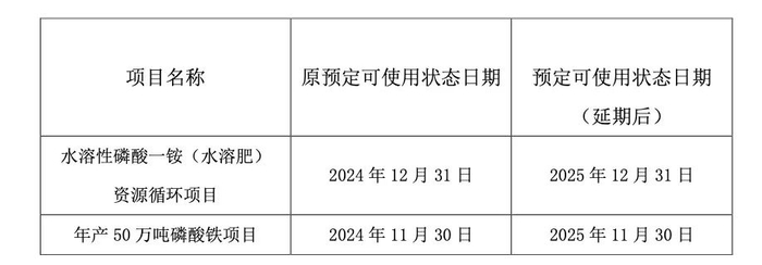 该公司表示,水溶性磷酸一铵(水溶肥)及磷酸铁的下游市场供需关系发生较大变化,需求增速放缓。同时,前述产品的主要原材料近年来受下游行业大规模扩张、产品地方销售政策等因素影响导致供应紧张,销售价格大幅上涨,项目建成后的原材料供应效率及成本控制无法得到有效保障,行业整体盈利水平低于预期。