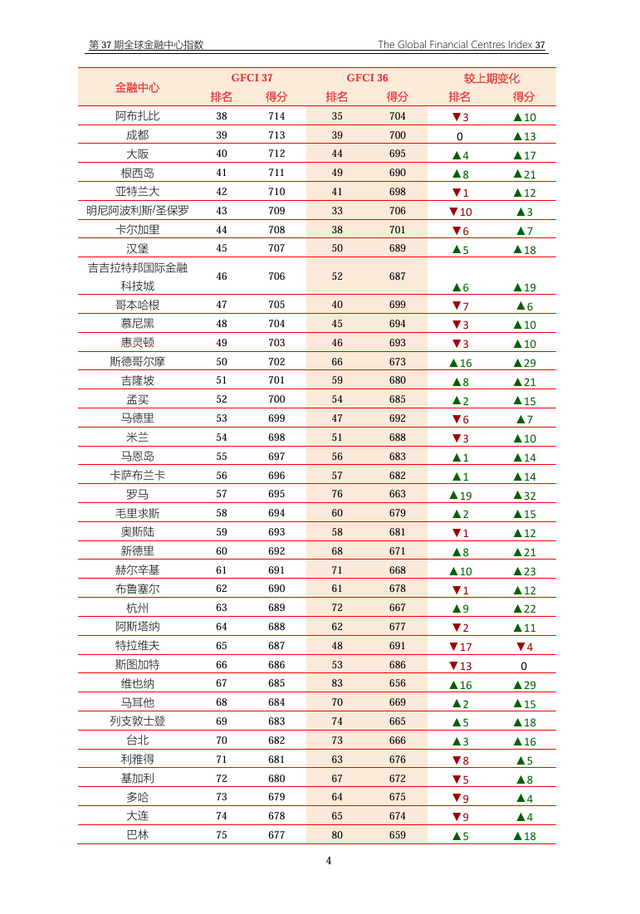 法兰克福降至第11名,迪拜第12名,华盛顿第13、都柏林第14、日内瓦第15、卢森堡第16、巴黎第17、阿姆斯特丹第18、波士顿第19,我国北京市排第20名——相比沪深,短板是缺乏全国性金融交易场所。