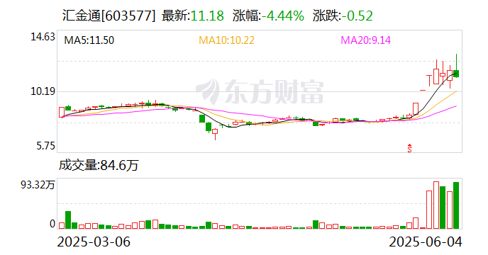 汇金通振幅15.44%,上榜营业部合计净卖出7864.65万元