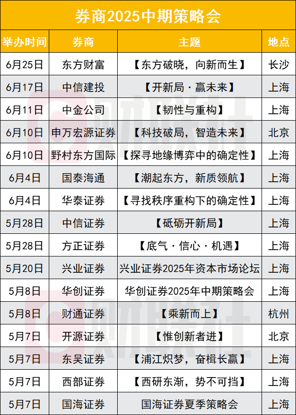 6月券商中期策略会呈现高频次、高密度、地域集中特点,具体安排如下: