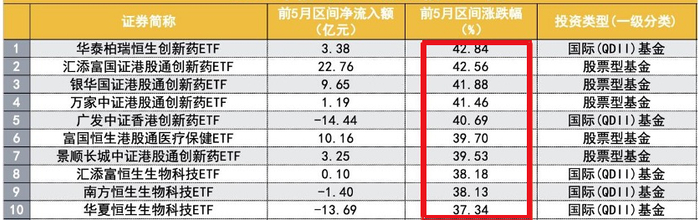 创新药在二季度接棒 AI 概念,成为年内 ETF 回报率的冠军。截至 5 月底,华泰柏瑞恒生创新药 ETF 年内涨幅 42.84%,医药主题 ETF 包揽了 ETF 回报率排名前 17 个席位,除了创新药,生物科技、医疗保健、医药卫生等相关主题 ETF 回报率也都超过 30%。