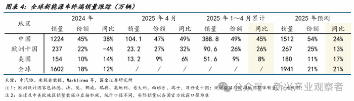 新能源车:2025年4月持续超预期,中国欧洲销量走势强劲