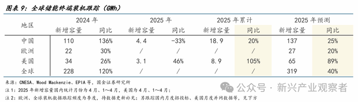 储能:中国同比增速放缓,美国维持相对高增