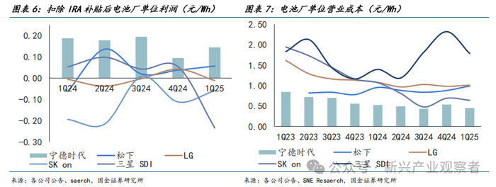 ③利:测算公司1Q25扣除AMPC补贴后单位营业利润为-0.01元 /Wh,YoY/QoQ+108%/亏损扩大,Q1北美新车型发售贡献部分收入、AMPC补贴,然而电池成本降幅小于价格降幅导致盈利承压;Q1扣除AMPC补贴营业利润率-1%。