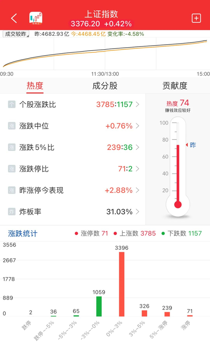 评:今天大A继续狂飙,指数2连阳了。个股近4000家上涨,80多家涨停,中位数+0.76%!赚钱效应真挺炸裂的。