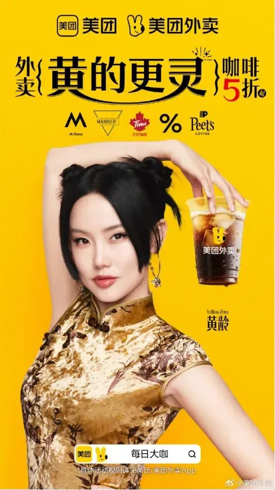 5月19日,美团率先出招,联动上海籍歌手黄龄,推出沪语版改编MV《外卖黄的更灵》,将品牌色“黄”与黄龄的名字融合,打造出一个极具本地化文化共鸣的营销事件。