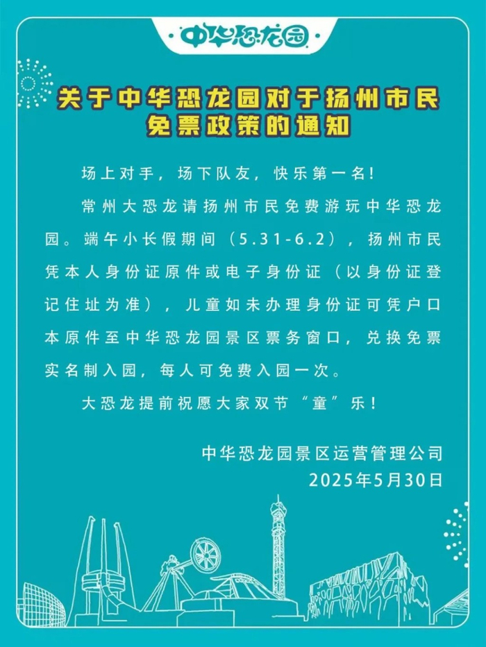 常州市的主场比赛恰逢端午假期,对阵扬州队,其间,常州市多个景区对扬州市民免景区门票。