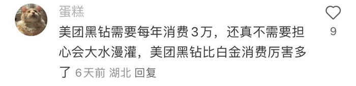 有网友评论:美团黑钻需要每年消费3万,还真不需要担心会大水漫灌,美团黑钻比白金消费厉害多了。