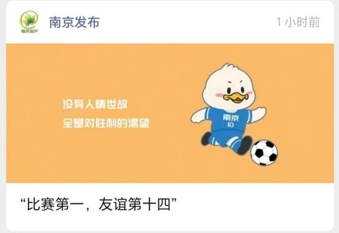 惨烈的竞争不只是赛场,场外也同样暗藏“杀机”。还是以南京为例,南京文旅在与无锡赛前的海报上,“南京咸水鸭”的身高远高于“无锡水蜜桃”,并配文称“水蜜桃,听说很好捏”。这也引来不少网友质疑称南京此举不够大气。