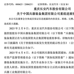 长安汽车(000625)公告称,6月4日,公司接到兵器装备集团通知,兵器装备集团收到国务院国资委通知,经国务院批准,对兵器装备集团实施分立。其汽车业务分立为一家独立中央企业,由国务院国资委履行出资人职责;国务院国资委按程序将分立后的兵器装备集团股权作为出资注入中国兵器工业集团有限公司。