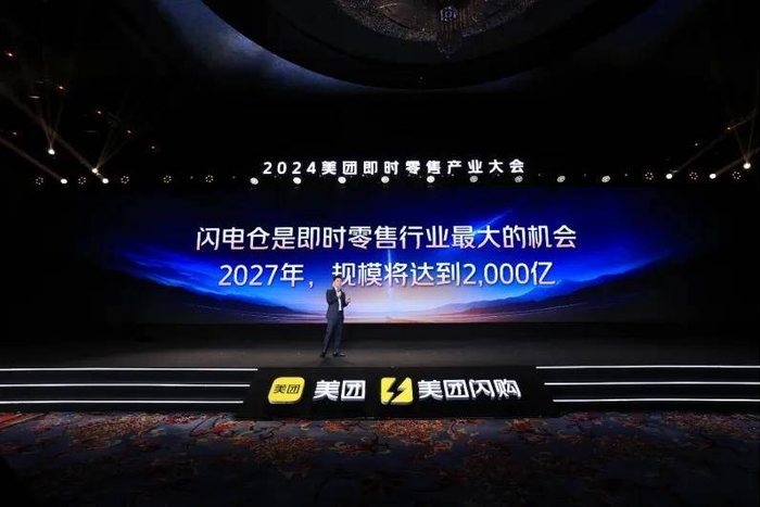 这一点,美团的积淀还是比较深的。典型的是闪电仓,采取「线上经营+前置仓」模式。目前,美团闪电仓数量已达3万个,2027年的目标是10万个,年销售额目标为2000亿。