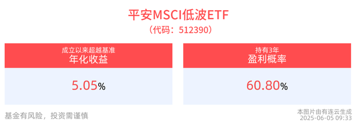截至2025年6月5日 09:33,平安MSCI低波ETF(512390)多空胶着,最新报价1.11元。拉长时间看,截至2025年6月4日,平安MSCI低波ETF近1周累计上涨0.54%。