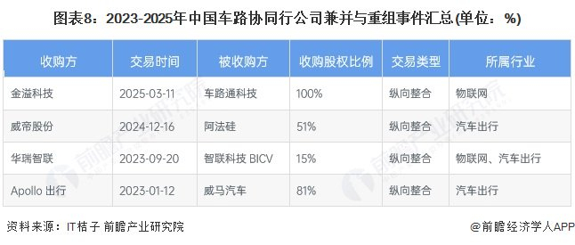 国内车路协同行业覆盖面较广,行业兼并重组事件以纵向整合为主。2023-2025年,如下所示: