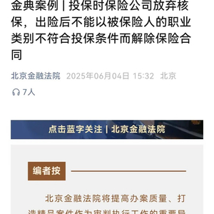 保险公司败诉!北京金融法院,公布新案例→