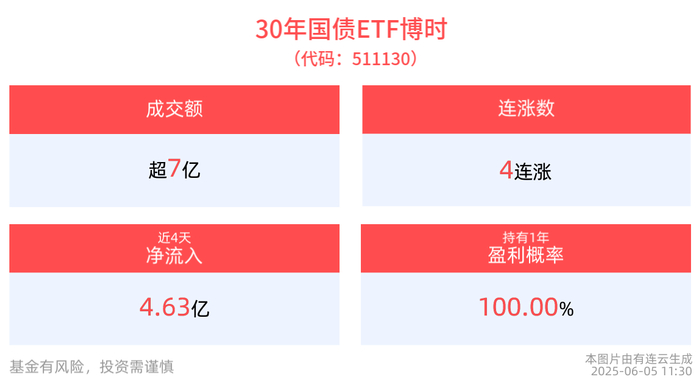 30年国债ETF博时(511130)冲击4连涨,成交额超7亿元,机构:长债市场仍然存在较强支撑