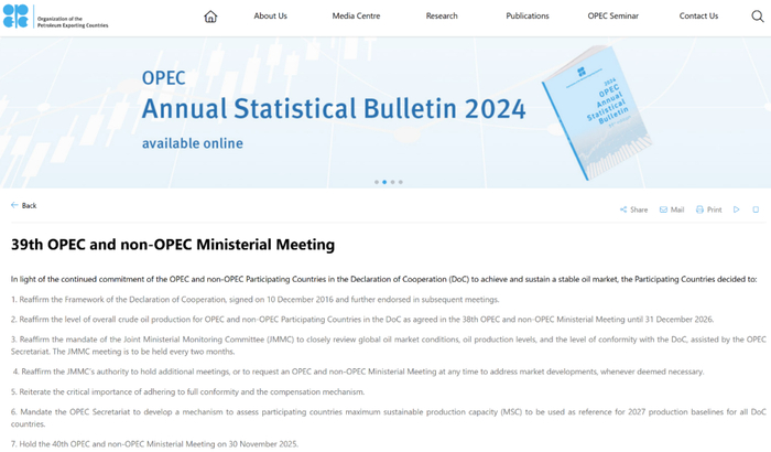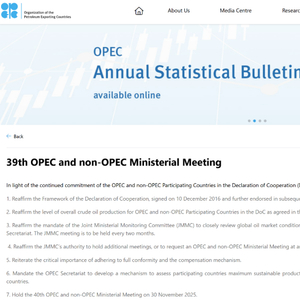 2025年5月30日,第39届欧佩克和非欧佩克部长级会议举行,欧佩克的官网发布了这次会议的公报。以下,为这次会议公报的完整内容: