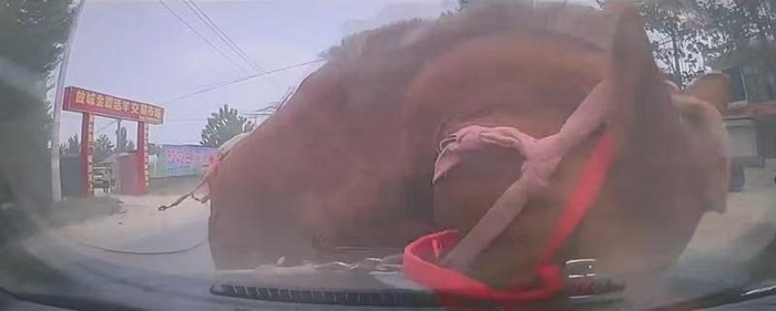 省道上突然蹿出受惊的马,撞碎前挡风玻璃