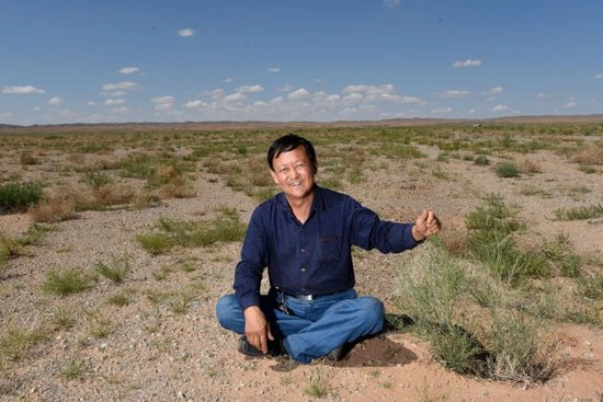 2015年,潘多云所在的巴彦乌拉嘎查5万多亩梭梭成活率还不到50%。老潘说动参与项目的牧民,大家一起补植。2016年,在项目团队的支持和村民的齐心努力下,5万多亩梭梭100%通过保存率验收。3年后,巴彦乌拉嘎查开始种植肉苁蓉发展沙产业。潘多云说:“现在巴彦乌拉嘎查每家每户的草场都有梭梭,希望大家的努力能让家乡的草场、环境,每家每户都越来越好。