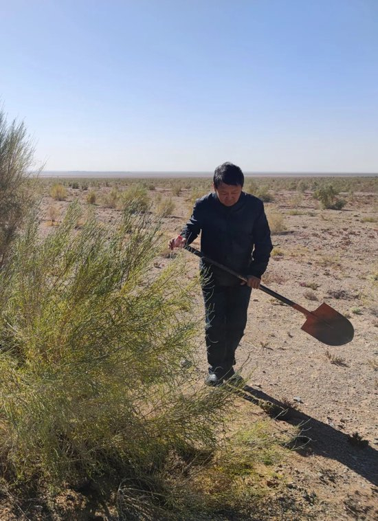 如今,巴彦乌拉嘎查的牧民已经总结出了一套梭梭种植和养护的方法。截至2024年底,巴彦乌拉嘎查一半以上的牧民参与“一亿棵梭梭”项目,种植以梭梭为代表的沙生植物超15万亩,平均保存率达80%左右。