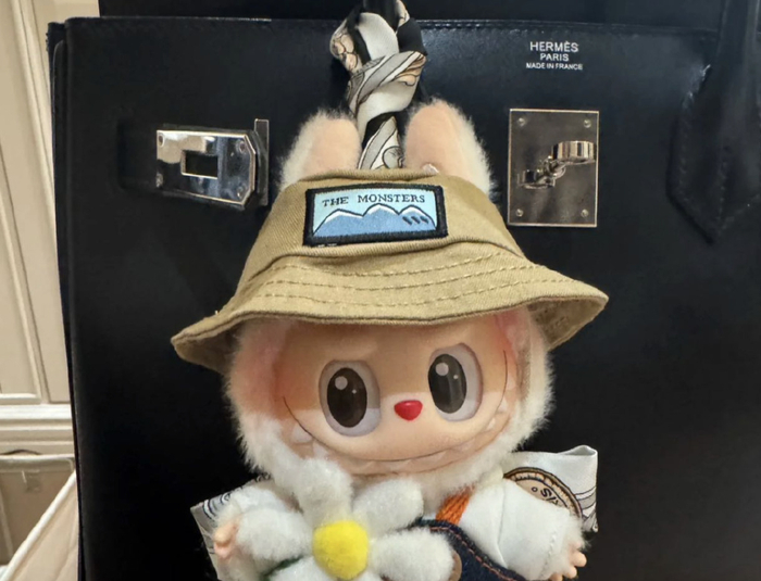原价99元的Labubu挂件也算一只脚混进了奢侈品圈,成了社交媒体汇总爱马仕和LV的天选挂件。
