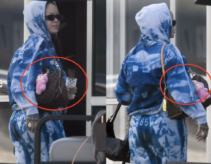 美国歌手Rihanna,在一次出街时,被拍到自己的 LV 包上挂了一只粉色的 Labubu 。