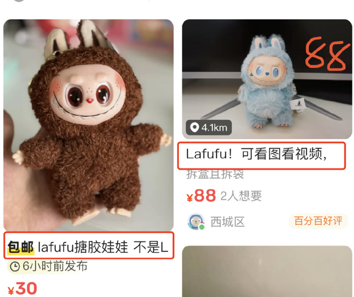 很快,市面上开始出现仿制品“国版”(仿制品)Labubu。