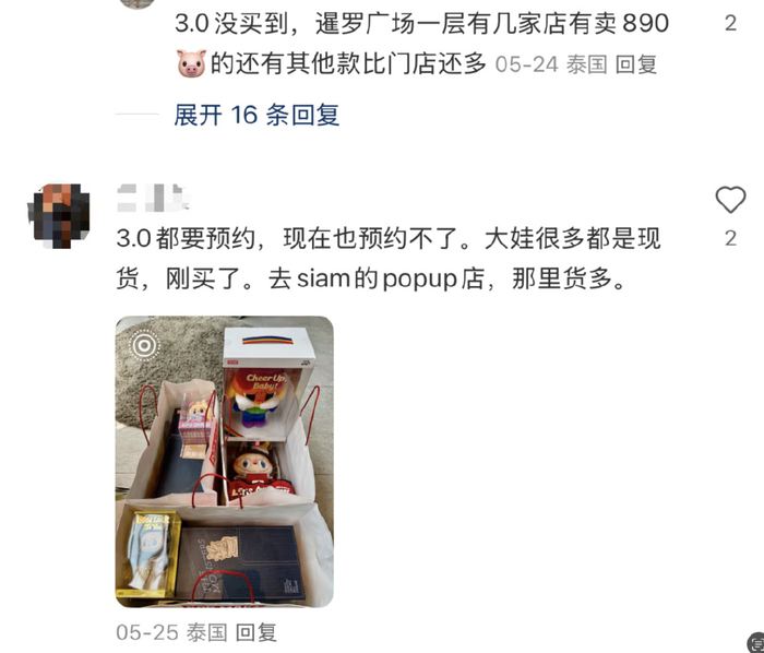 在泰国曼谷,Labubu马卡龙系列盲盒官方售价550泰铢(约110元人民币),流通市场价格却普遍超过千元。