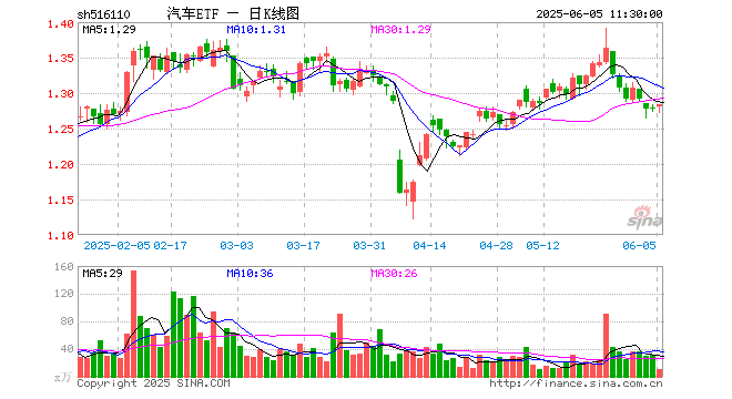 6月5日,截止午间收盘,汽车ETF(516110)涨0.47%,报1.283元,成交额1436.56万元。汽车ETF(516110)重仓股方面,比亚迪截止午盘涨0.47%,赛力斯涨0.11%,福耀玻璃涨1.49%,上汽集团涨0.13%,长安汽车涨1.59%,江淮汽车涨0.49%,拓普集团涨0.63%,宇通客车涨0.29%,长城汽车跌0.22%,德赛西威跌1.17%。