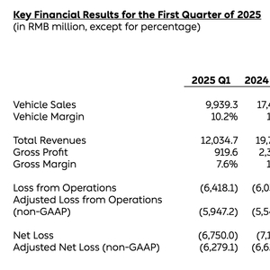 6月3日,蔚来汽车发布了2025年第一季度财报。