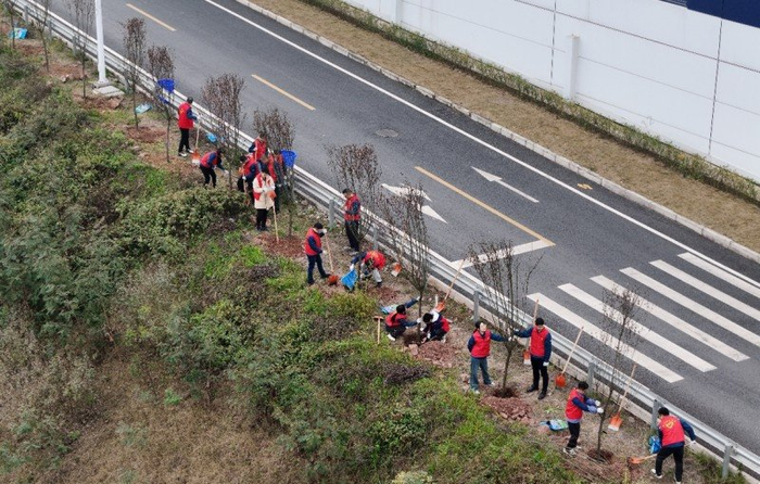 3月12日植树节当天,赛力斯多个党支部联动开展植树活动,党员职工们挥锹挖坑、扶苗培土、提水浇灌,用实际行动践行绿色环保理念。