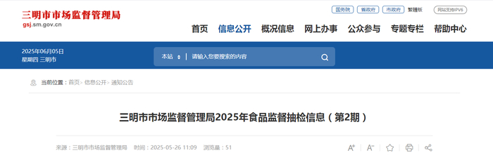 福建省三明市市场监督管理局2025年食品监督抽检信息(第2期)