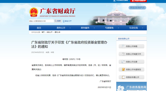 【政策动态】广东省政府投资基金管理办法