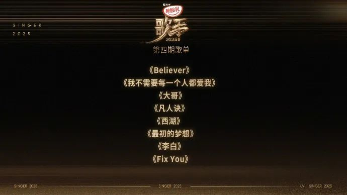 6月5日,歌手官方微博公布第四期歌单: