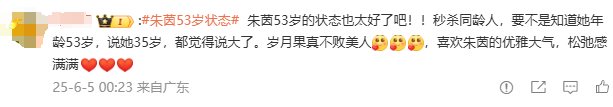照片发布后,朱茵自然老去的状态,获得网友好评。人们纷纷留言:“不敢相信,紫霞仙子已经53岁了!”、“美人在骨不在皮,朱茵用优雅和自信,诠释着另一种美,女神还是女神 !”