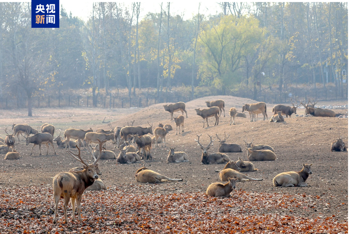 麋鹿、黑鹳、褐马鸡等“国宝级”物种种群持续增长,南海子麋鹿苑向全国“输出”668只麋鹿,在全国建立了47处麋鹿迁地种群。