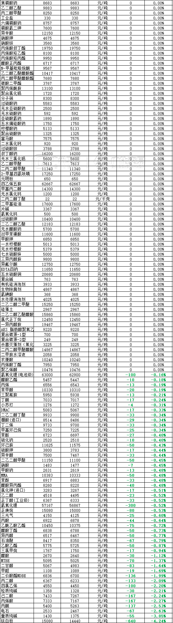6月5日热门化工原料全国区域报价总表!