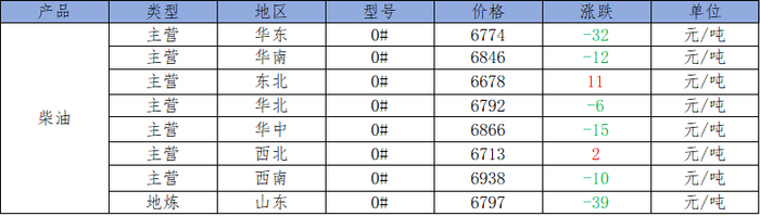 预计下一工作日主营柴油价格稳中小涨;地炼厂柴油价格企稳盘整。