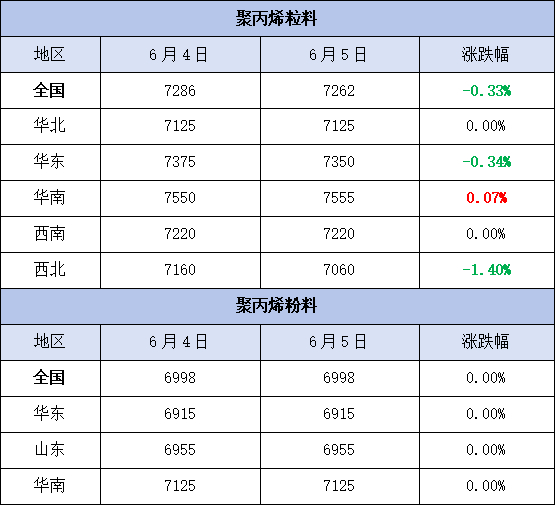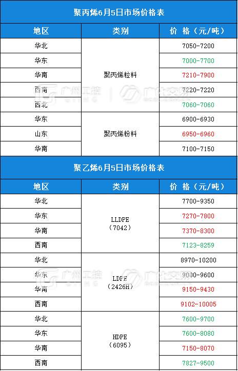 塑料类报价(6月5日)