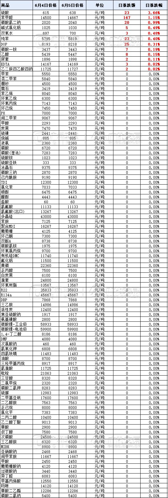化工大宗价格(6月5日)