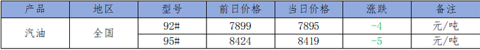 国内市场汽油价格