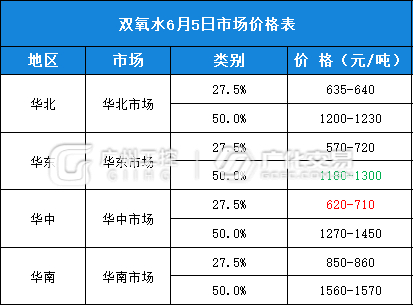 双氧水报价(6月5日)