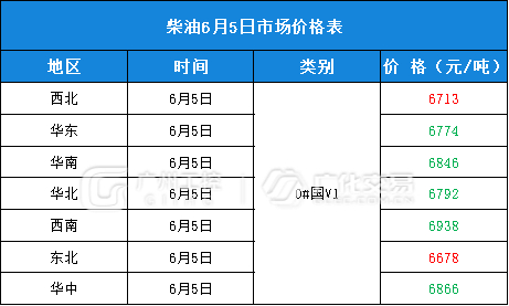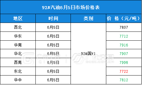 油品类报价(6月5日)