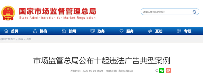今年3月,浙江省台州市椒江区市场监管局依据《广告法》有关规定,对当事人作出罚款10万元的行政处罚。