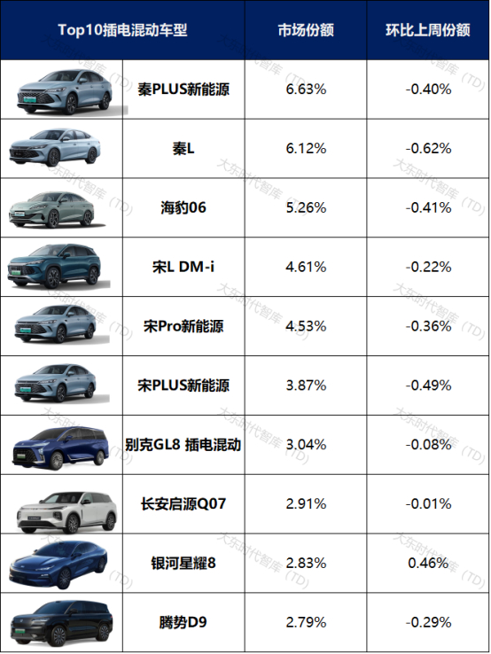 插混乘用车车型榜(不含增程式):