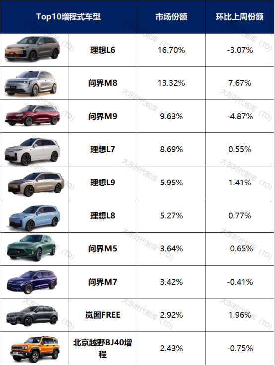 增程式乘用车车型榜: