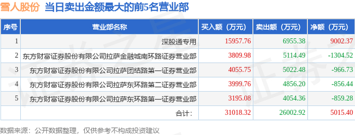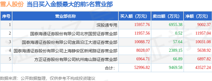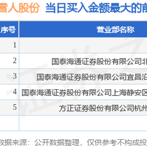 6月5日雪人股份(002639)龙虎榜数据:游资毛老板、消闲派、上海超短帮上榜