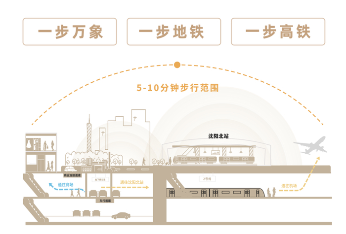 结合项目特点,华润置地设计了一条无界互通走廊,可实现“一步高铁、一步地铁、一步万象”的便捷生活,打造全新一站式TOD生活。未来,通过这条无界走廊,沈阳北站旅客可轻松抵达万象购物中心,而附近居民更能在冬日仅披一件外套,通过地下通道快速换乘地铁、直达机场,重新定义城市出行的舒适与效率。